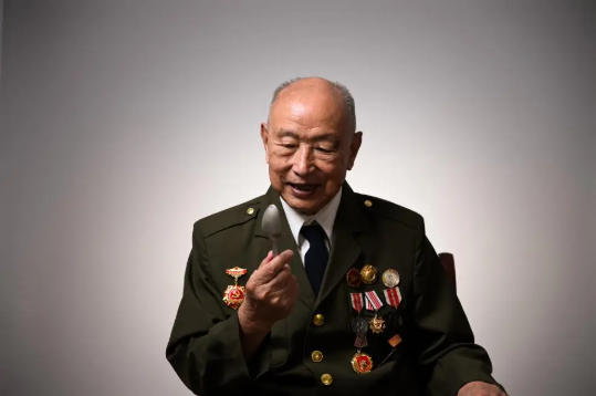 拍摄于2024年7月的照片显示志愿军老战士曾国兴手持战友赠送的勺子。新华社记者 杨青 摄