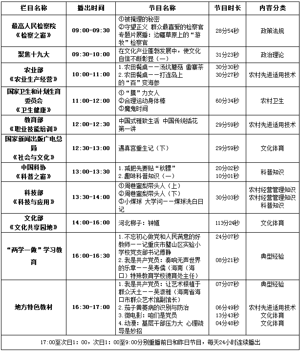 2017年12月10日 IP流媒体节目日播出表
