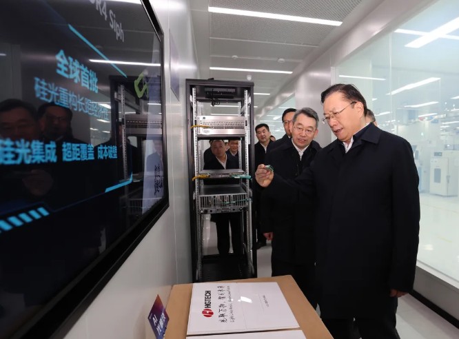王忠林来到武汉华工正源光子技术有限公司,察看AI高速光器件生产线及光模块、硅光芯片等产品展示,听取企业技术研发、生产销售等情况介绍,对企业坚持以技术创新为驱动、着力跻身全球顶级光模块供应商的成效表示肯定。王忠林说,企业是光谷建设的主体,光谷的发展史就是一部广大企业的奋斗成长史。希望华工正源公司持续加大科技研发和市场开拓力度,不断延伸创新链、完善产业链,为建设“世界光谷”贡献更大力量。