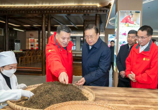 茶产业是恩施州第一大特色产业和富民产业,“恩施玉露”“利川红”等产品畅销全国。王忠林走进“利川红会客厅”主题展馆,了解当地茶产业发展历史,察看制茶工艺展示,希望企业深入贯彻习近平总书记关于茶产业发展的重要指示精神,珍惜品牌形象,加强质量把关,更好推动茶文化、茶产业、茶科技融合发展,持续增强品牌影响力,带动更多农民稳定增收。在宣恩县万寨乡伍家台村,王忠林沿途察看千亩茶园和茶旅融合发展情况,走进脱贫户杨昌慈家中,和夫妇二人围坐拉家常,细致询问他们的身体健康状况和子女教育、家庭收入等情况,同他们一起回顾党的十八大以来农村生产生活发生的巨大变化。王忠林祝愿乡亲们的生活越来越好,希望当地深入学习贯彻习近平生态文明思想,牢固树立“绿水青山就是金山银山”的理念,持续巩固拓展脱贫攻坚成果,进一步拓宽农民增收渠道,努力绘就“农业强、农村美、农民富”的乡村振兴新画卷。