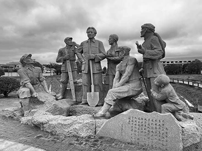 毛主席带领干部群众挖井雕塑(资料图片)。