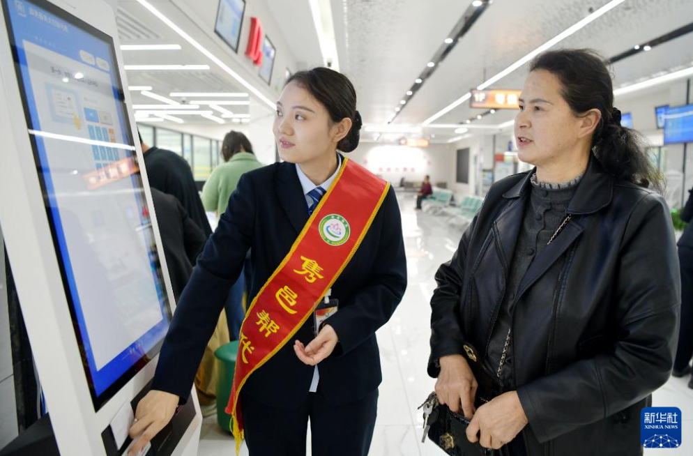 4月8日,在湖北省咸宁市通城县政务服务中心,工作人员为市民提供引导服务。新华社发(刘建平摄)