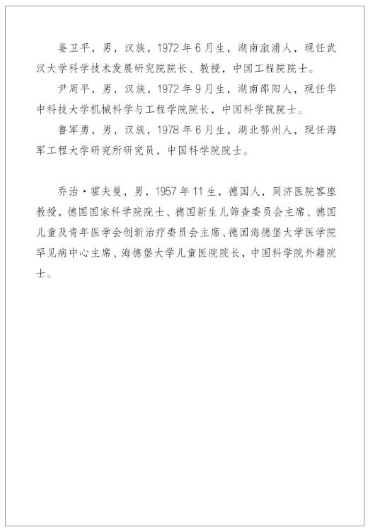 唐辉明、刘泉声、何舜平、张锦岚、刘正猷、赵书红、肖明清、姜卫平、尹周平、鲁军勇、乔治·霍夫曼……