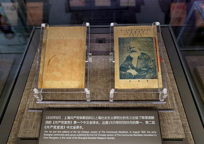 中共一大纪念馆展出的由陈望道翻译的《共产党宣言》第一个中文全译本。新华社记者 刘颖 摄