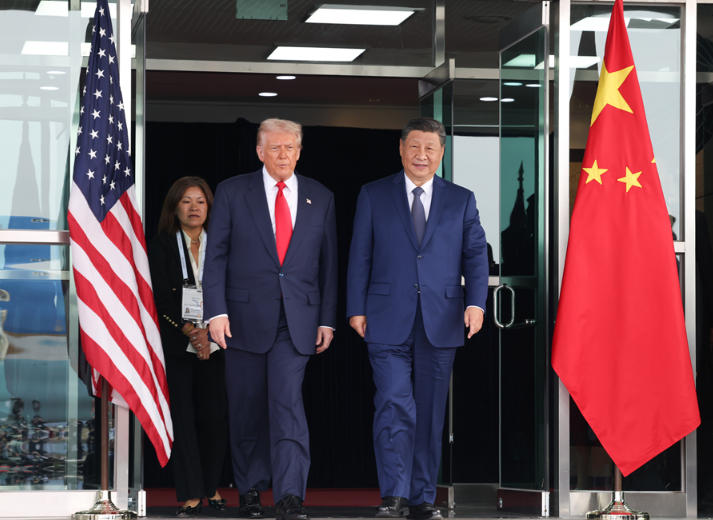 当地时间10月30日,国家主席习近平在釜山同美国总统特朗普举行会晤。